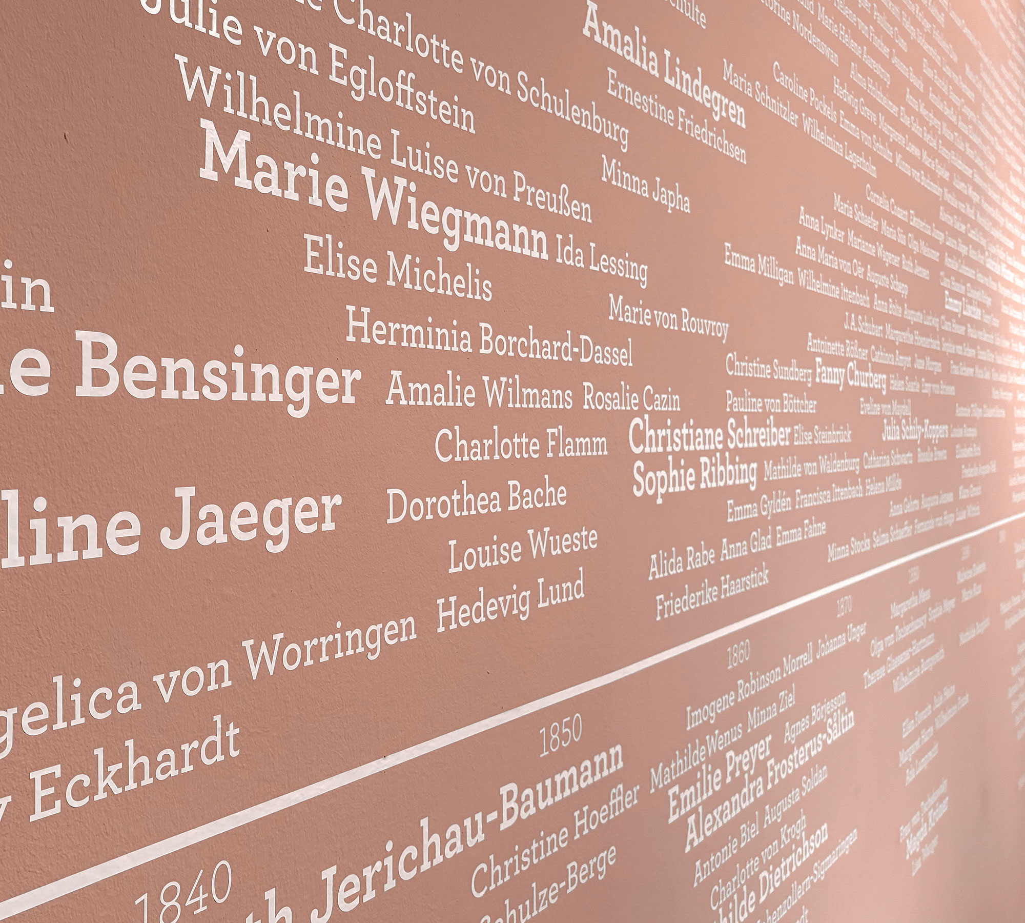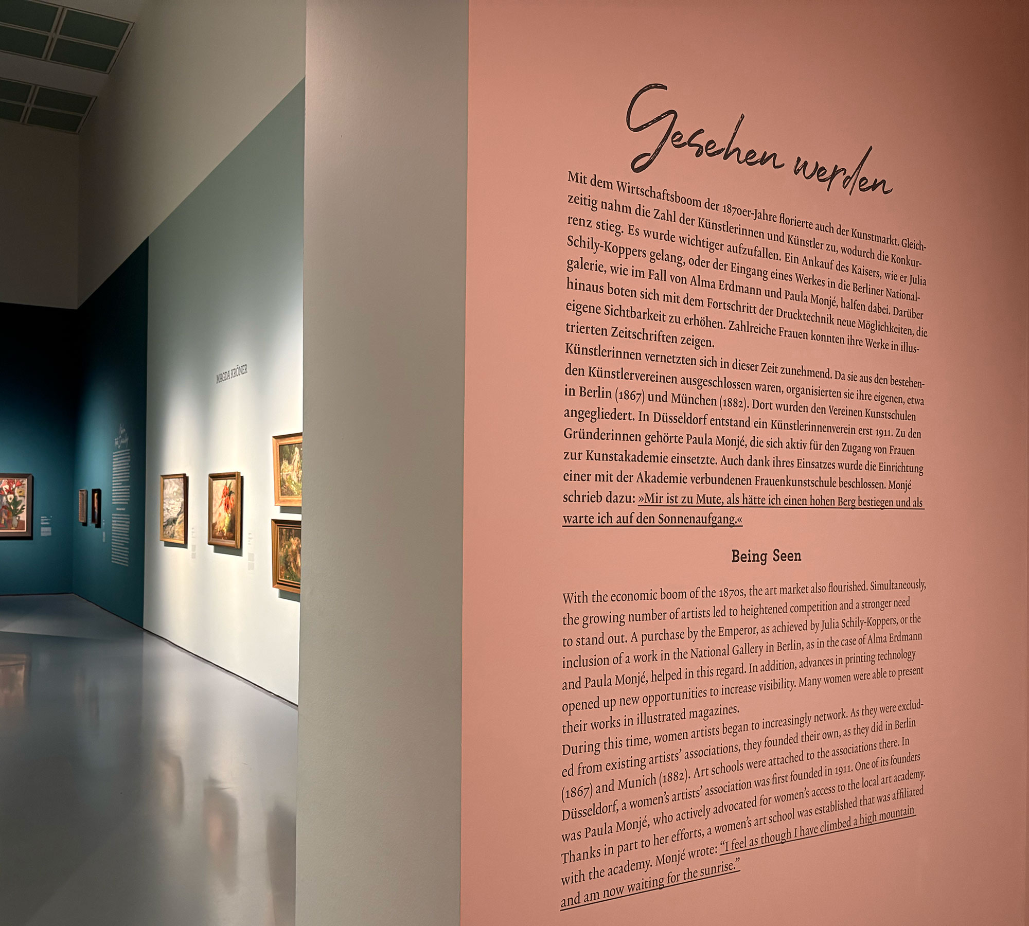 Neben dem Katalog entwickeln wir zudem das Ausstellungsdesign zur Ausstellung Künstlerinnen! Von Monjé bis Münter im Museum Kunstpalast Düsseldorf. Detailtypographie ob an der Wand oder auf Papier – die gute Lesbarkeit für den Betrachter steht im Vordergrund – und wird dankend und lobend wahrgenommen. In Zusammenarbeit mit Partizia Widritzki. (Copy-Bilder Ausstellung bei Anne Orthen)