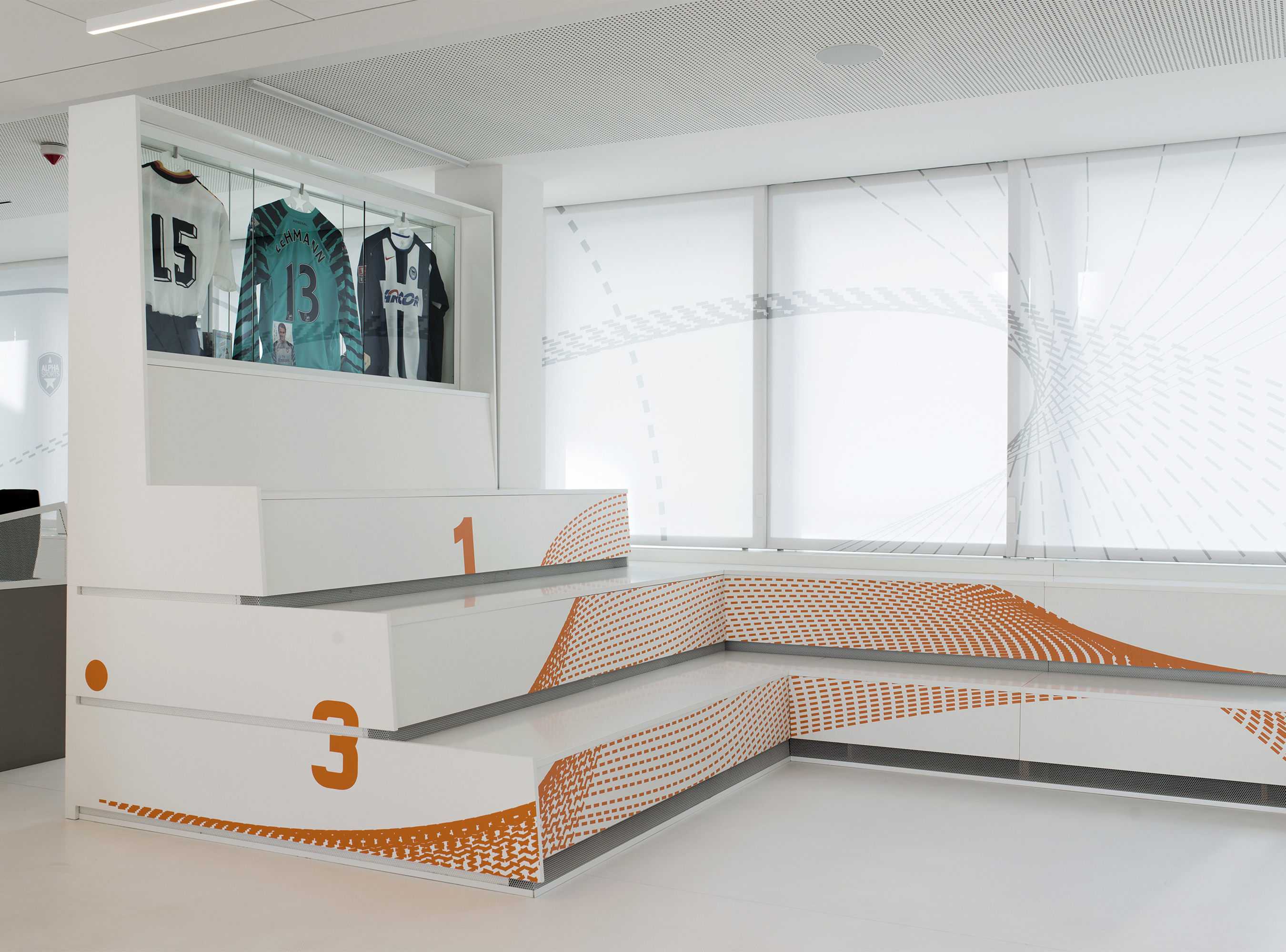 von Alpha Sports ist in enger Zusammenarbeit mit AHA-Architekten entstanden. Die Formen verknüpfen die Räume und bedienen trotzdem die baulichen Auflagen: Ein Raum im Raum entsteht indem sich Dynamik aus Präzision entwickelt.